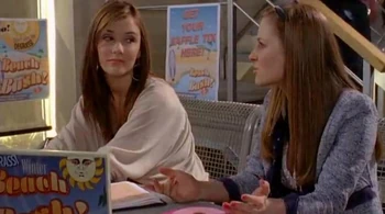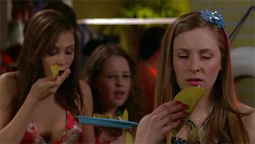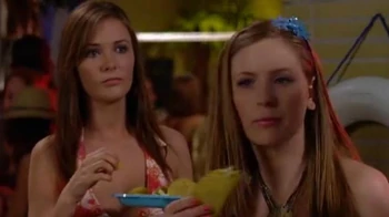 Later on, at the volleyball tournament, Holly J. tries to persuade Anya to break up with Owen, as Holly J. feels that Anya is too good for him. Owen hears Holly J. insult him, and sprays the back of her head with a water gun, which angers both Holly J. and Anya. Anya offers to help Holly J. dry off, but Holly J. resists her help.