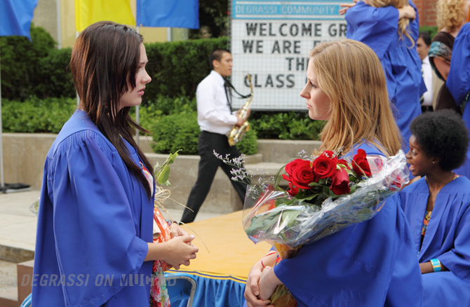 In Take a Bow (2), Anya and Holly J. graduate Degrassi, and have a pre prom for Holly J., along with Chantay and Fiona. Anya, Chantay and Holly J. put their initials underneath their hand prints, on the Degrassi sidewalk.
