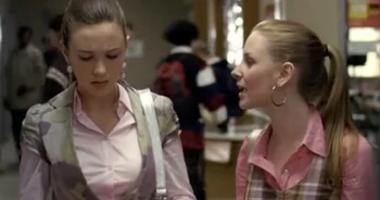 In Another Brick In The Wall, Holly J. is embarrassed to be seen with Toby Isaacs in front of her friends, Anya and Chantay Black. Later, Holly J. tells her it is okay to be seen with Toby, and Anya asks if they like him now. Holly J. calls Anya "stupid."