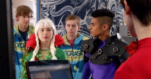 In #RiseAndGrind, at Hunter's house, Vijay turns up to Hunter's welcome back party and Hunter says hi to him and they renew their friendship. Hunter asks Yael, Baaz and Vijay to play computer games with him and they all agree.