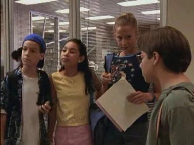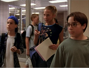 In Girls Just Wanna Have Fun, Toby and J.T. are all dressed up for the 7th grade only dance, and greet Emma and Manny before walking into the dance.