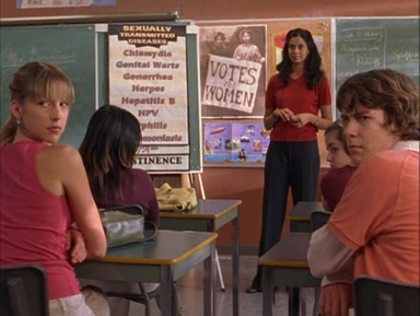 In Hot For Teacher, Emma asks J.T. what he’s doing on the computer and helps him correct his spelling mistake when he’s searching for guinea pigs.