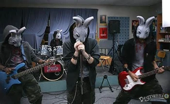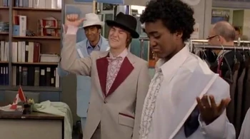 In the movie Degrassi Goes Hollywood, they were featured as the band to play in the new Jason Mewes movie, Mewesical High, but with Manny Santos as lead the vocalist to help her score her part in the movie, also with Jay Hogart temporarily replacing Spinner and Mia Jones (Peter's Girlfriend) on tambourine. They perform the theme song for the ninth and tenth seasons of the series. Peter left the band and his loft behind after he overdosed on methamphetamine, Jane was the lead singer, but Peter wanted to rejoin so he was let back in, and Spinner now owns the loft where the band practices. The band was then renamed Janie and The Studs Featuring Peter Stone, and played during the opening scene for Degrassi Takes Manhattan. When Spinner found out that Jane had cheated on him, they broke up, and all the members except for Sav left for college, ultimately breaking up the band.