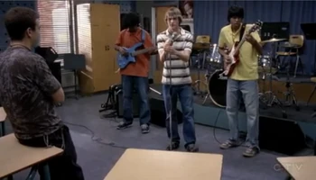 Stüdz was created as a way for the members to have time away from their girlfriends. Peter then joined as a singer after seeing them. After practicing, the group realized that they needed a drummer and asked Spinner Mason, who rejected the offer, saying that they were a boy band. Angered by this, Peter instructed Sav to speedily play the guitar while Peter sang, "I'm not a pretty boy!", introducing a more rock style for the group. A gimmick for the band was also introduced - rabbit masks. With the new attitude and look, Spinner agreed to drum for the band and they recorded their song "Shared Custody". They were a hit until they tanked at a live performance, but they have since recovered from that. In season 8, a student from Lakehurst tried to hold up The Dot Grill, with Spinner inside. The hold-up resulted in Spinner getting shot and not being able to play with Janie and the Studs, then known as Stüdz, for a little while.