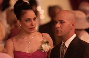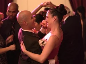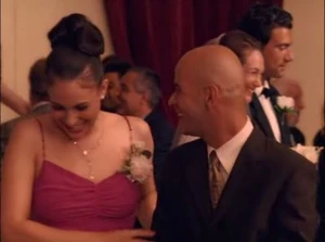 Joey points out that she must be happy to have someone replace her ex-boyfriend's band. Diane nods in agreement and says that she doesn't need a 200 pound idiot drooling over her. Joey clinks his wine glass against hers and says a toast to her moving on. Diane checks her watch and says that she has to leave and help finish preparing for the wedding. She then mentions that she has no date for the occasion and smiles as Joey helps her put on her coat. Joey smiles back and says that he knows a guy who might be interested in going with her. Before leaving, Diane says to tell him that she would be honoured. The next day at the wedding, Diane introduces Joey to her friends Catherine and Mia and then mentions that he has his own business. Joey states that he is a sales representative for used cars and acts out his commercial where he rips his shirt off. However, while he and Diane laugh, her friends stare at him weirdly and somewhat disgusted. They think he is joking and laugh along with him and Diane. When Craig and his band get up on stage and start performing, Diane asks Joey to dance. Joey declines and says that dancing with him is embarrassing, but Diane insists and says that it will be fun. After dancing, Joey offers to get her a drink. He heads to the bar and he orders two whiskey sours. While he is waiting, he overhears Diane's friends talking about him, and saying that he was being a cheese-ball and dancing like a spastic donkey. Embarrassed, he tells Diane that he is not feeling well and needs to go home. Diane asks if he's okay. Joey says he's fine, and then kisses her good-bye.