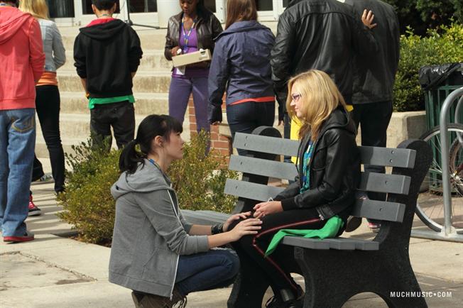 Annoyed with Clare's melodramatic babbling, Katie tells her "Wipe away those drama queen tears and get out of my face!" Later during lunch, Clare and Alli are talking to Sav Bhandari about how they think Katie is a bitch. Sav says that she's a great soccer player, fundraiser, and that she's on the honor roll. Sav promises Clare that he'll talk to Katie about giving her a second chance. Katie later approaches Clare and says that Sav told her that she needed some grade ten students on staff and tells her that she's got the job. However, Katie is not happy that Clare turned to Sav (on the strength of being her best friend's brother) to convince her to give Clare the job. So, Katie assigns her to cover the play that Eli and Fiona Coyne are working on, knowing very well that Clare wouldn't be so thrilled with that idea.