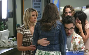 In We Built This City, when Liberty announces that Natasha Bedingfield is playing at prom, Manny looks at Toby next to her and smiles in excitement. Manny, Liberty, and Emma have an all girls + Toby hug before the prom when they realize they're all going their separate ways soon. In the end, they all make up with Liberty, and flip J.T.'s hat at the J.T. Yorke Memorial.