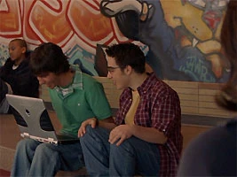 In Love is a Battlefield, Toby shows Emma and Manny the article about Manny and Damian Hayes uniting the schools on the computer.