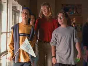 In Girls Just Wanna Have Fun, Toby and J.T. are all dressed up for the 7th grade only dance, and greet Emma and Manny before walking into the dance.
