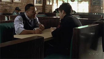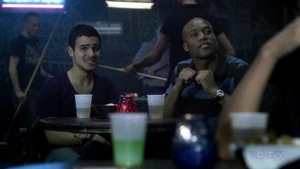 In Standing In The Dark (2), Marco visited The Core to get a textbook from his best friend Ellie Nash and began chatting with Eric. Ellie told her boyfriend Jesse Stefanovic that Marco kept "holding onto a guy who treats him like crap," referring to his boyfriend Dylan Michalchuk, and she suggested that they set him up with Marco. Jesse advised her to mind her own business. In any event, he believed that since Marco was loyal to a fault, he would never let her set him up with Eric. Ellie said that this meant that they would just have to be sneaky. When Marco returned home that evening, he found that Ellie and Jesse had invited Eric over for pizza. Ellie awkwardly told Jesse that she wanted to show him "the thing" and they left them alone. Marco was irritated that they had set him up like that. When Eric said that he thought that there was something between them, Marco told him that there was: Dylan, his boyfriend. Eric got the message and promptly left.
