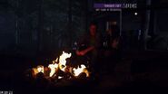 Unable to get out, the girls attempt to dig a hole underneath the door with a garden shovel but end up finding an old, buried box containing the rings of the previous owners, and are horrified, believing that it's a sign Jake's story was real. Katie finds a chainsaw on the wall and cuts down the door, only to discover that Bianca had been the one to lock the tool shed door as a prank. When everyone returns safely to the cabin, Marisol spots someone in the woods and screams, though nobody believes her at first. Drew and Eli look outside and see someone approaching the cabin and picking up the chainsaw that Katie left on the ground. They scream and everyone calls for Jake. He comes into the living room and tries to keep everyone calm, although he is afraid as well, and grabs an axe.