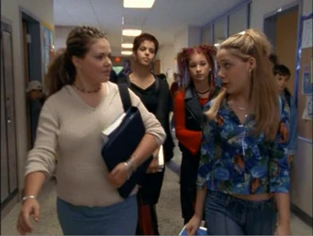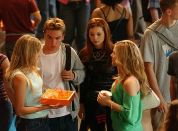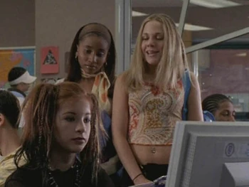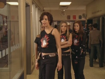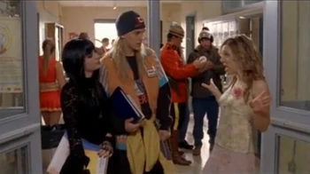 The next day, Ellie told Paige and Hazel that she had written lyrics for a new song in Physics. Paige replied that they did not have time for the band and Hazel pointed out that they had enough extracurriculars already as they had joined the Yearbook Committee, the Girls' Athletic Association that morning. Paige added that they also had a "topless cheerleader crisis," referring to the fact that Peter Stone's video of Manny exposing her breasts was circulating around the school. When Ellie explained that she did not see why that meant the two of them had to quit the band, Paige commented, "Sweetie, we were never really in the band. That was just an Ellie Nash fantasy. We're dealing with reality here. This is serious." Hazel then suggested that she join Downtown Sasquatch as they were looking for a new drummer, but Ellie was reluctant to do so since she and Craig were still not on speaking terms.