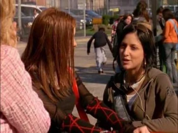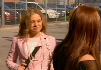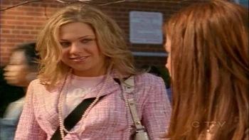 On their first day of Grade 11 in Ghost in the Machine (1), Paige greeted Ellie, who was hanging out with Alex Nuñez in front of Degrassi. Ellie complimented her outfit and Paige replied, "New year, new look, new Paige!" Their relationship had substantially improved from the previous year, likely due to the fact that Paige had helped Ellie to realise that she had a problem and needed to stop cutting. However, Alex said, "Ellie, just because Princess Prissy talks to you doesn't mean you have to answer." An annoyed Paige then left and Ellie sighed.