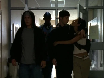 In Time Stands Still (1), Sean and Spinner Mason find the damage done to Spinner's car in the parking lot and Jay and Alex pull up in Jay's also-vandalized car. They guess that the damage was done by Rick Murray and Spinner wants to tell Mr. Raditch about it. Sean retorts that Mr. Raditch will want to know why Rick did it (as a result of Jay and Spinner's bullying) and Jay agrees. They decide to leave the principal out of it and to get back at Rick another way.