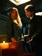 Later, during rehearsal, J.T. tells everyone Emma is the new Mina. When rehearsal begins, Emma has to kiss Dracula, but she becomes embarrassed. After rehearsal, Amy and Alex mock Emma for not being comfortable kissing a boy on stage. Emma moves to pick an item up from the table, reaching past Amy and flaunting the wristband Jay had given her. Amy freaks out and asks if that wristband is hers. Emma tells her that it belongs to her. Outside, Emma runs to Jay and tells him what happened backstage and that the wristband is 'Amy-Kryptonite'.