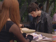 With the Dracula play coming up in several days, everyone is practicing. Backstage, Emma watches Danny practice. When Jay gets up and walks over to her, he startles her by rubbing her shoulders, stating she's tense. She replies that she is always tense. He rubs his hands down her arm and rubs her butt, leaving Emma slightly disturbed and confused. Not hearing Danny call her onstage, or J.T., till the second or third time, Emma rushes on stage and says her lines with a bored Amy and Alex Nuñez. She looks back at Jay and he smirks at her.