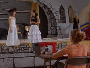 After rehearsal, Manny says they should cancel the play while they have the chance. Amy talks about how she should play 'Mina Virgin' and Alex jokes, that's acting all right! Emma sits down, and places the hat on her, and says all the lines. Manny tells her she should totally play Mina, but Emma declines and says that Darcy being gone doesn't mean she'll get the part.
