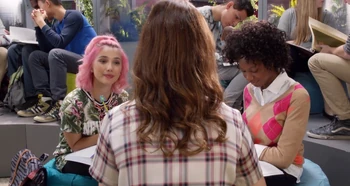 In #NoFilter, Lola and Shay do not like Frankie's new hair, and Lola asks what's wrong with her since changing your hair is a cry for help. Shay points out that Frankie has been acting differently since Winston broke up with her. Frankie says she's fine, and rejects Lola's invitation to go out that night. Frankie starts receiving messages from a boy online, who turns out to be Lola and Shay catfishing her. Frankie is upset when she realizes what they have done, but Lola and Shay reveal they did it because Frankie wouldn't talk to them and they wanted to know was wrong with her. Lola tells her they were worried that Frankie might try to hurt herself, and Shay adds they were also worried Frankie might want to end their friendship. Frankie admits to Jonah Haak that she thinks her friends like the old her better than who she feels she is now. Later, Frankie apologizes to Lola and Shay, and they apologize to her for catfishing her. Lola and Shay tell her they didn't know how to talk to her, and Frankie reveals she wanted to look different because she feels different. Shay and Lola just admit they want her to be happy, no matter how she is. They all hug and make up.