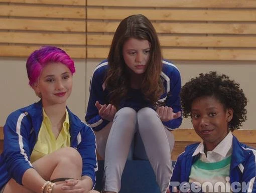 In Can't Stop This Thing We Started, Shay, Lola, and Zoë run through the halls laughing about Zig's arm-wrestling loss to Grace.