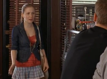 In Lost in Love (1), Holly J. tells Spinner that he has two options: tell Jane now or late that he failed out of police college. Spinner decides to lie to her for a while, and Holly J. is the one tell Jane the truth. Later, Spinner calls in Holly J. before school, enlisting her help to help him back Jane or she would lose her job. Spinner tells her that Jane is at a leadership symposium that he needed to get into, and he figured Holly J. would be the expert at all things involving student leadership. She agrees to help, telling him to put on a suit and meet her there, also advising him to think about what to say to Jane.