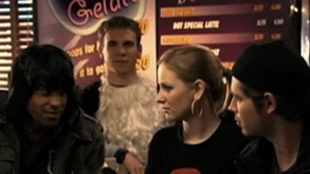 In Just Can't Get Enough, Holly J. approves Stüdz, of which Spinner is the drummer, to play in the Winter Beach Bash.