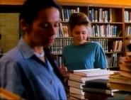 Before taking her final exam, Caitlin has to return a few books to the resource center to Ms. Avery. Caitlin enters to find Ms. Avery, who is looking upset and says that she is there to return her books, Ms. Avery just tells her to put them down there.