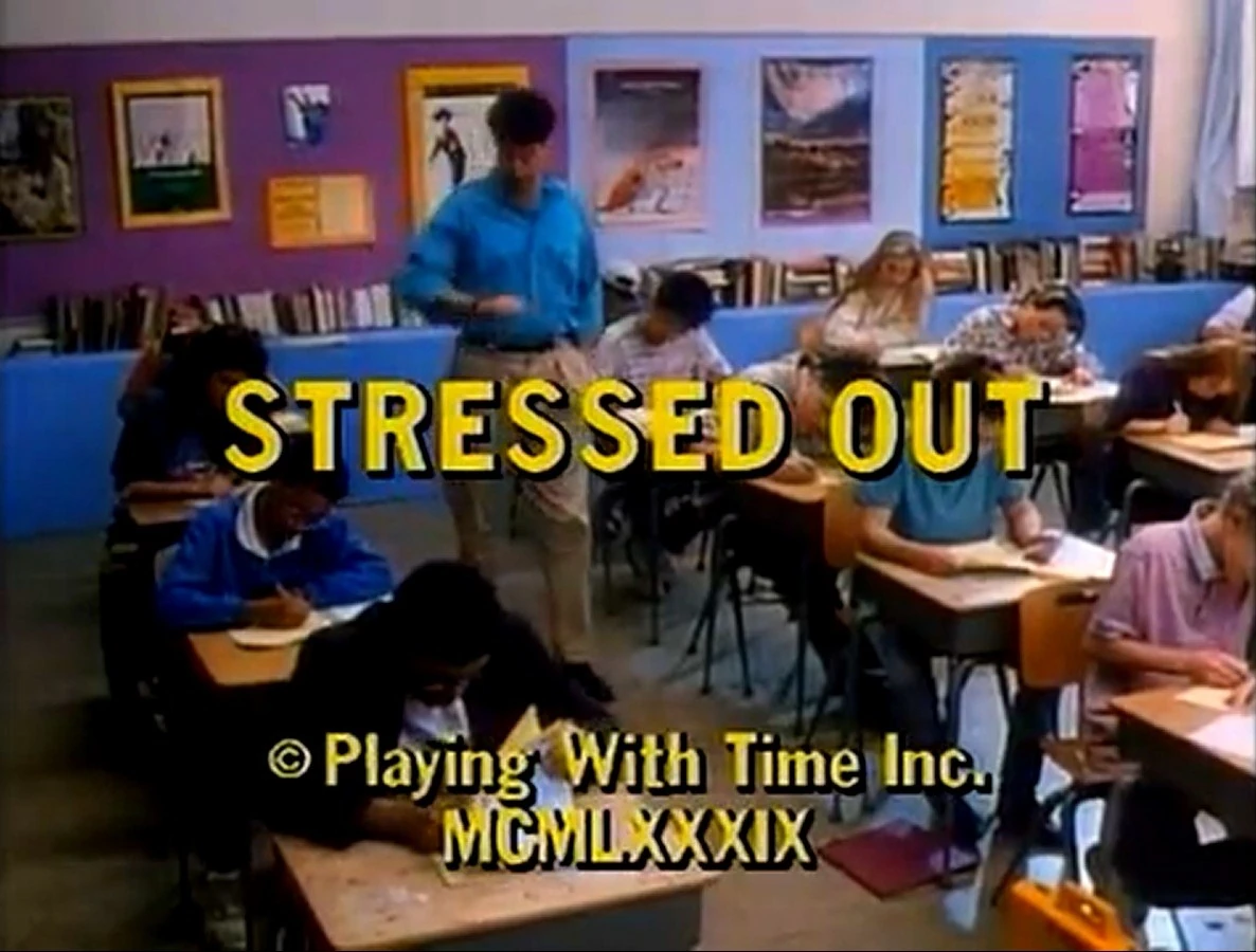 Stressed Out is the fifteenth episode of Season 1 of Degrassi High, and the fifty-seventh episode overall of the original Degrassi series. It aired on February 13, 1990.