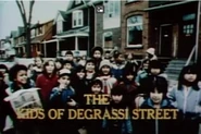 The Kids of Degrassi Street is a Canadian children's TV show which aired from 1979 to 1986. It is the first in the Degrassi series, which is about the lives of a group of children living on Degrassi Street in Toronto, Canada. It grew out of four short films: Ida Makes a Movie, Cookie Goes to Hospital, Irene Moves In and Noel Buys a Suit, which originally aired as after-school specials on the CBC in 1979, 1980, 1981 and 1982, respectively. The show was acclaimed for its realistic depiction of every day children's lives and tribulations, and remains memorable to many Canadians because of this.