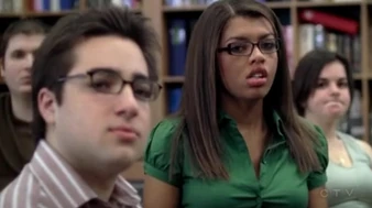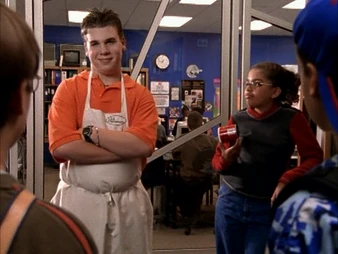 In Standing In The Dark (1), Liberty and Toby eat lunch on the steps of the cafeteria because there is nowhere to sit inside. Toby is angry that "J.T.'s killers" are here, but Liberty logically tells him that one person killed J.T., not the school. Later, Liberty confronts Toby about his podcast that declared that Lakehurst wasn't welcome at Degrassi, and asks him if he wants an ongoing war.