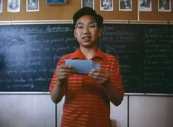 In Stage Fright, we see Wai Lee finishing a speech about how much he loved watching T.V. it sounded like he had made it up at the last moment and he didn't put too much effort into it. The class didn't find it too exciting either. Mr. Raditch advised him too pay much more attention to his school studies and not so much time watching television.