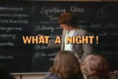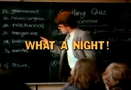 What a Night! is the ninth episode of Season 1 of Degrassi Junior High. It aired on March 15, 1987.