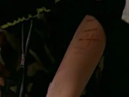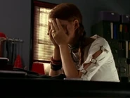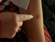 Ellie is shown running late to school. When she arrives at the front desk, the secretary tells her that she has been late five times in the past two weeks and if she doesn't pull herself together, she could lose her co-op job. As Ellie reaches for the late pass from the secretary, she literally begs the woman with her eyes to hand her the slip, pushing Ellie to feel the need to cut. Ellie runs into the bathroom, pulls out her compass and cuts herself. She drops her compass into the sink as she hears Paige walk in the door. Paige sees the blood in the sink as well as the compass and tells Ellie that she has to stop doing this. Ellie claims her arm is fine and that all she needs Paige to do is "...leave me alone, just like you normally do."
