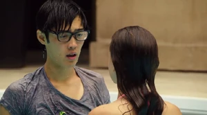 Frankie smiles at him, and Winston backs up and accidentally falls into the pool. Frankie dives in and pulls him to safety. Winston accuses her of getting into the bikini to distract him, but Frankie says that she doesn't need an elaborate plan to make him look dumb. He says that she has been doing it all week in the club meetings and in her MASH game, where he was the loser. However, Frankie asks him, "Who said you were the loser?" Frankie reveals she meant for Winston to see the MASH game so he would know that she liked him. The two kiss in the pool, before pulling away, saying that Miles could never know about this. They then kiss again.