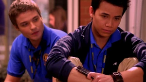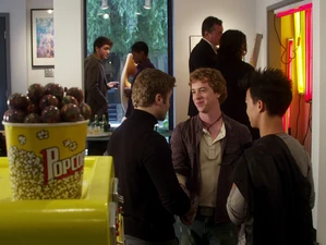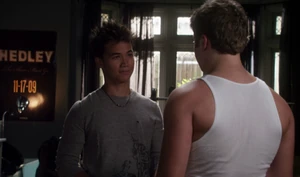 Just as Zane is about to be bid by another guy (after being bid on by two girls), Anya is getting ready to declare the young man the winner just as Riley bids $50 on him as he walks back into the room, clearly shocking Anya and those in the room, winning the date. Zane is clearly surprised as well, but nonetheless, smiles at Riley. After the auctioning, Zane tells Riley that "his schedule is pretty full" and cannot attend the date, even though Riley tells him he won him fairly and that "the school is his witness to it". Zane brings up what he thinks that the school is going to think his actions that day must mean just as Drew comes up, asking if he is gay as the school is talking about him. Before Riley can give an answer, Zane insists Riley was "only helping out a teammate". Drew says that it was none of his business and leaves. Riley insists he didn't have to cover for him and Zane says it annoys him how people "feel entitled to an answer". Riley asks if this means that the two have a date. Zane, subtly holds his hands and gives Riley another chance saying that he "had some date planning to do".