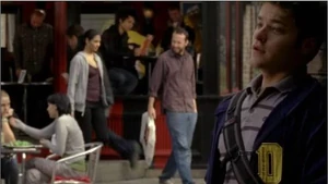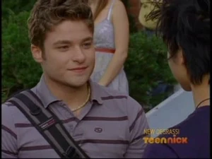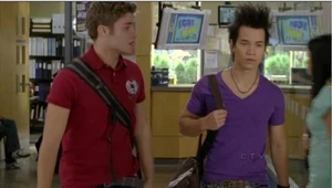 In In Your Eyes, Riley first spots Zane across the hall while he's helping Anya with a video on Degrassi's most eligible bachelor, of which he is the subject. While Anya asks him questions about the kinds of girls he is attracted to, Riley's gaze keeps drifting towards Zane in the background, who can also be seen subtly checking him out as he reads a book. The answers he gives her are vague and he apologizes to Anya, insisting that he's doing his best, but Anya shuts the camera off settling for calling him a "man of mystery".