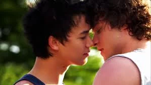 The couple nearly kissing during the summer.
