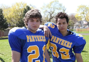 The football team later confronts Riley, bluntly asking if he's into guys. Riley finally comes out of the closet for the first time, boldly even stating he's only interested in "one particular guy" while looking straight at Zane. Who, in turn, smiles at him.