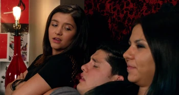 In #HugeIfTrue, At Frankie's house, Zig, Esme and Grace are invited by Tiny to hang out. Frankie, Jonah, Zig, Esme, Grace, Tiny, Shay and Lola are all sitting down on the sofas and playing "Never Have I Ever". Grace asks "What if you don't drink?" and Zig says she can take a sip of her dry ginger ale instead.