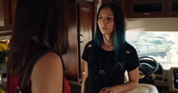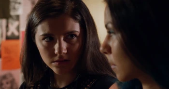 Outside the school, Grace excitedly watches Zoë do her speech and praises her when she finishes and they hug. Grace asks if she's still worried this will get back to her mom but Zoë reckons her mom won't believe it till she catches her making out with a girl and she can't find a girl to make out with. Zoë meets Rasha and Grace comments on it.