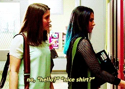 In #ThatFeelingWhen, in the hallway, Zoë asks Grace to switch partners with her but Grace declines. Zoë says she can't stay partners with Rasha because it's too hard and Grace owes her for leading her on the year before. Grace then invites Zoe to sit with her and asks what was really going on. Zoë says that Goldi told her that Muslims can't be gay but Grace points out that all Muslims can't be straight. Zoë tells her that Winston wants her to ask Rasha out for him but Grace suggests she just talk to her. Zoë says that she can't so Grace tells her to either grow a pair and ask the girl she likes out or keep switching lab partners the rest of her life.