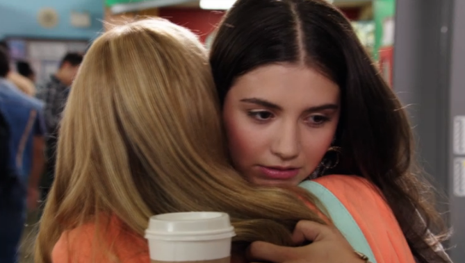She arrives at school afterward, with people staring and whispering as she walks by, and asks Frankie if she wanted to head out for lunch. Frankie tells her how she was waiting in the cafeteria, but it'd be best if they ate outside and begins leading Zoë away from the school. Zoë asks why that is needed. Frankie tells her how the students are mad at her because the pep rally got canceled because of the allegations made. Zoë tells her how they weren't started by her, but Frankie says everyone thinks she did.
